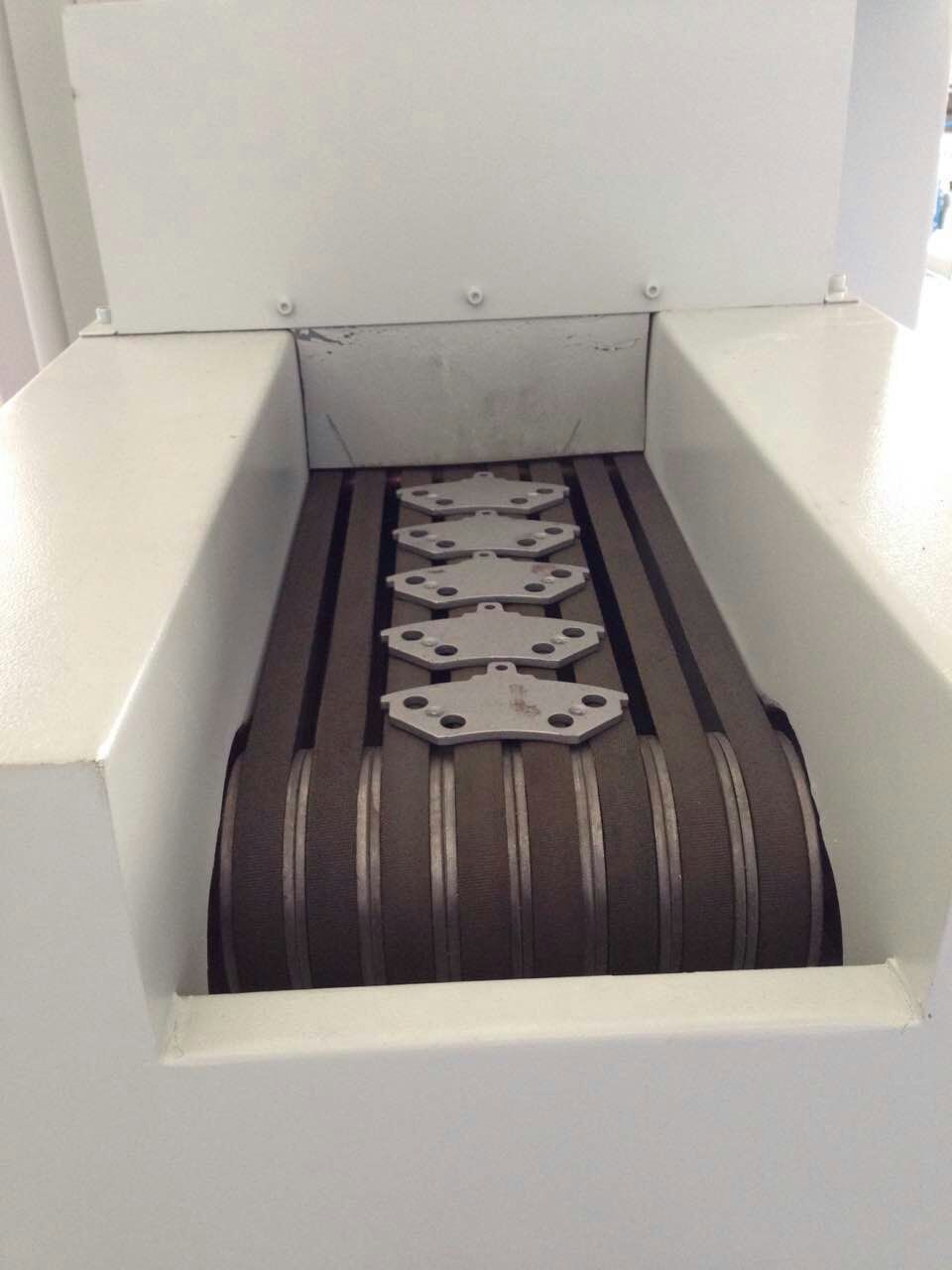 剎車片的生產過程中質量尤為關鍵,其中最重要的一個生產環節,鐵才與剎車片雛形粘合,粘合前需要通過自動噴砂機,才能有效的粘合。
